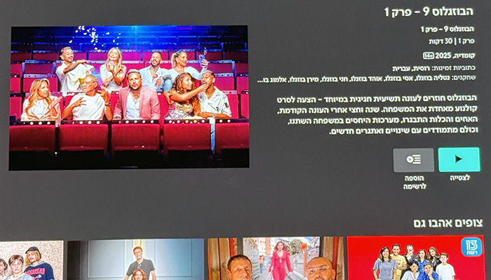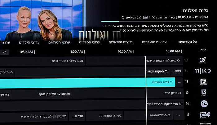 לוח שידורים והקלטות – ניתן להקליט תוכניות לצפייה מאוחר יותר כולל תזכורת.