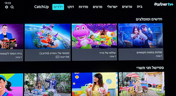 - ילדים – מסך מלא של תוכן לילדים לכל הגליאים עם כוכבי הילדים, הצגות, סדרות חדשות ומומלצות, ספיישל חגים, סדרות וסרטים מהערוצים כמו ניקלודיאון, Zoom, ג’וניור, הופ, Wiz, KidZ ועוד…