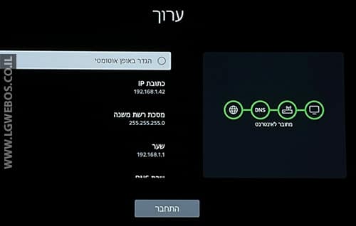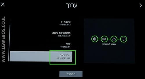 - עכשיו נשנה את ה-DNS בהגדרות הרשת בטלוויזיה.