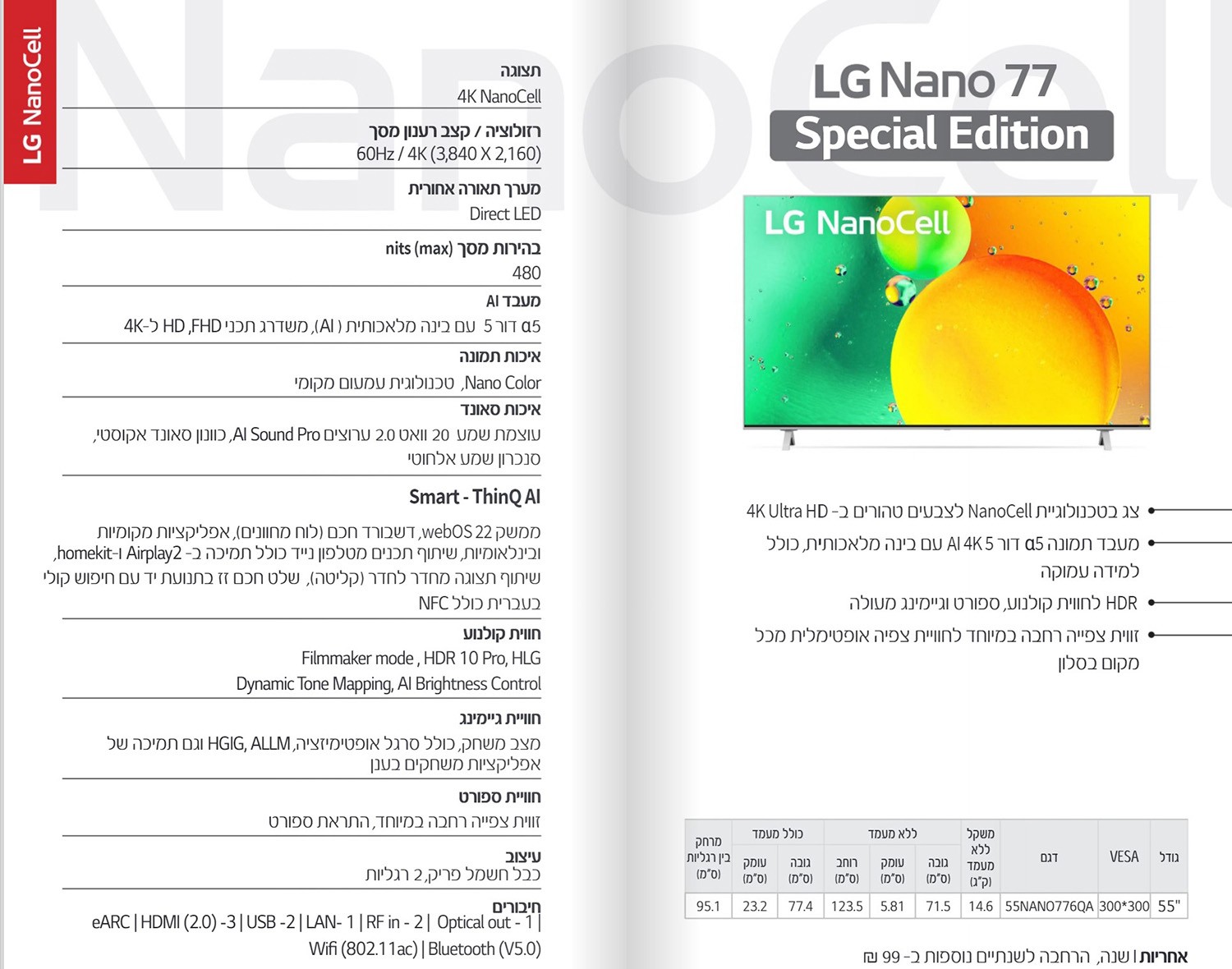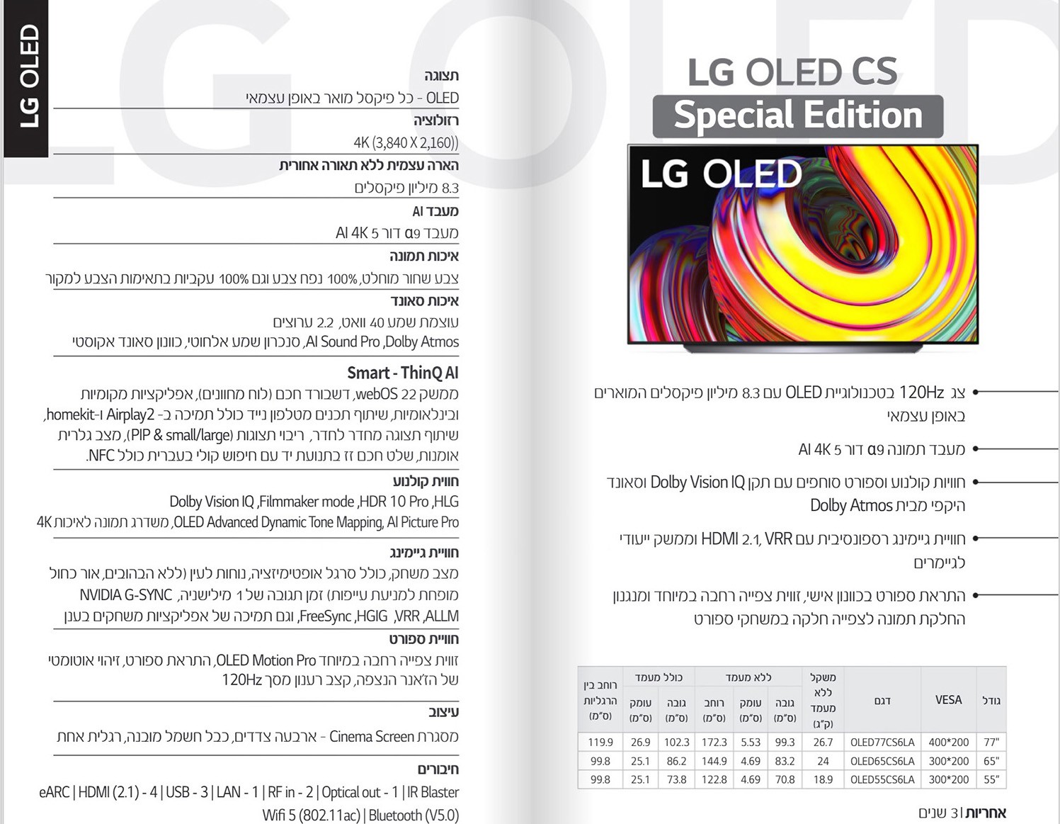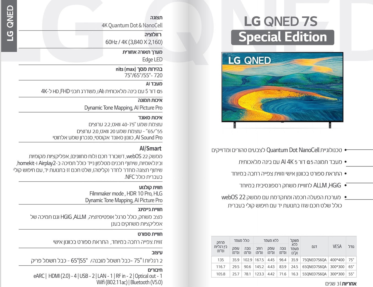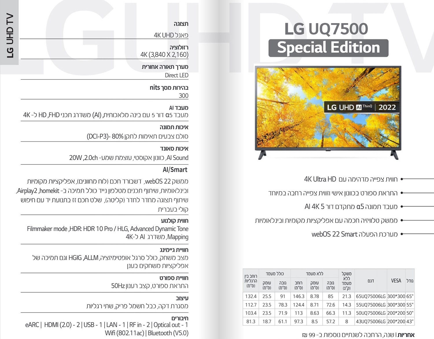 מפרט דגמי טלוויזיות LG מהדורה מיוחדת