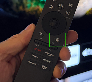 - יש לעבור למסך ההגדרות ע״י לחיצה ממושכת על כפתור ההגדרות בשלט רחוק (“גלגל שיניים”).