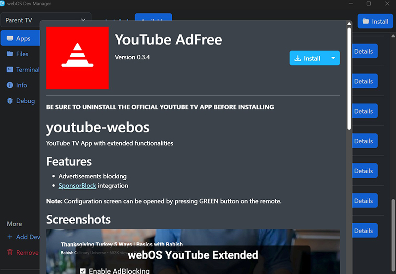 שימו לב! קובץ חיצוני זה אומר שזה קוד בפיתוח ובגלל שזו גרסת פיתוח אז היא תהיה קיימת (“חיה”) בטלוויזיה לפרק זמן של בערך 900 שעות-+ (בערך חודש) בלבד. לאחר מכן האפליקציה תמחק ותצטרכו להתקין ולהגדיר אותה מחדש.