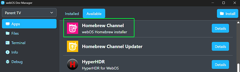 - הפעילו את האפליקציה “webOS Dev Manager” במחשב.