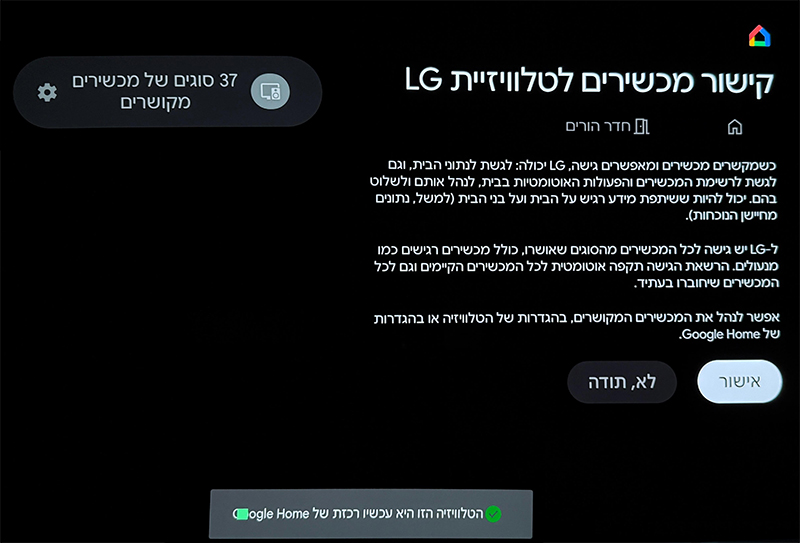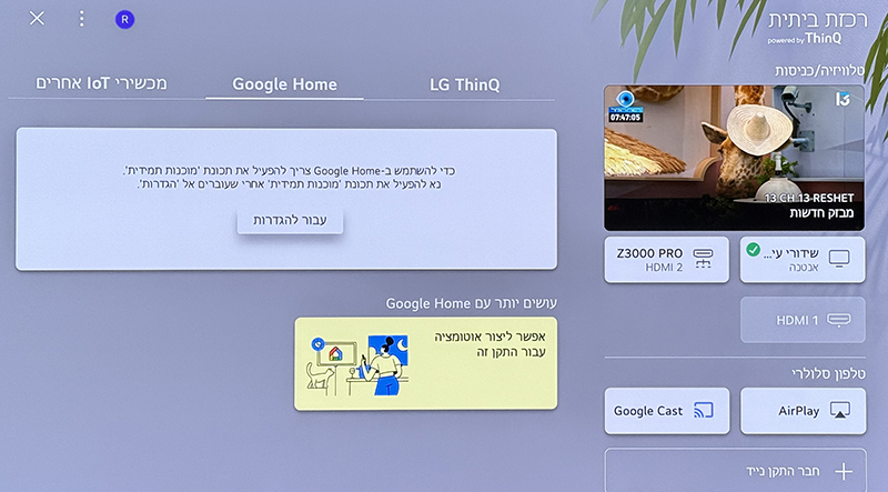 טלוויזיות LG תומכות בהתקני IoT ביתיים, כולל תמיכה ברכזת Matter ו-Google Home.