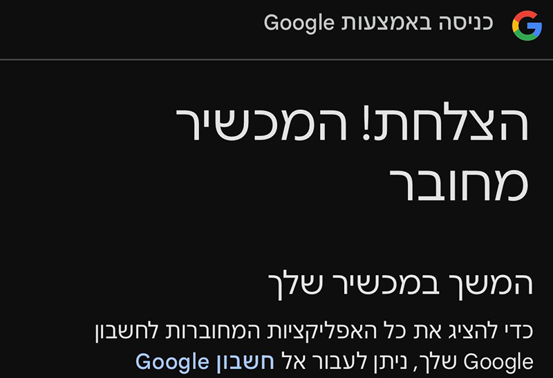 - זהו, לאחר מכן תקבלו אישור שהמכשיר מחובר.