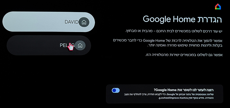 - לאחר החיבור יש לחזור למסך הטלוויזיה ובמידה ויש לכם מספר בתים אז תבחרו את הבית החכם הרצוי.