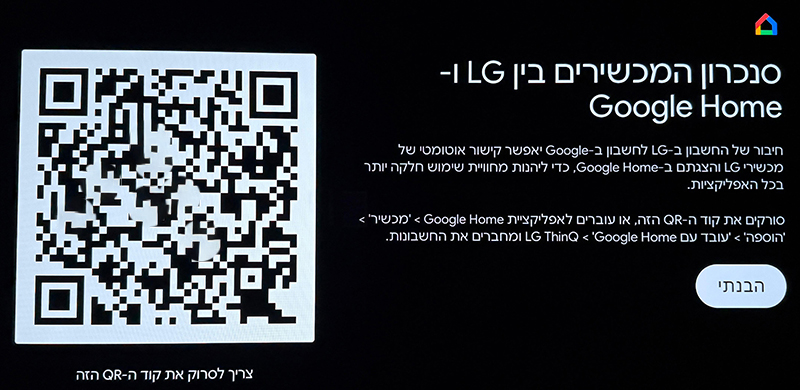 - להוספת מכשירים חכמים חדשים יש לסרוק את הקוד ה-QR.