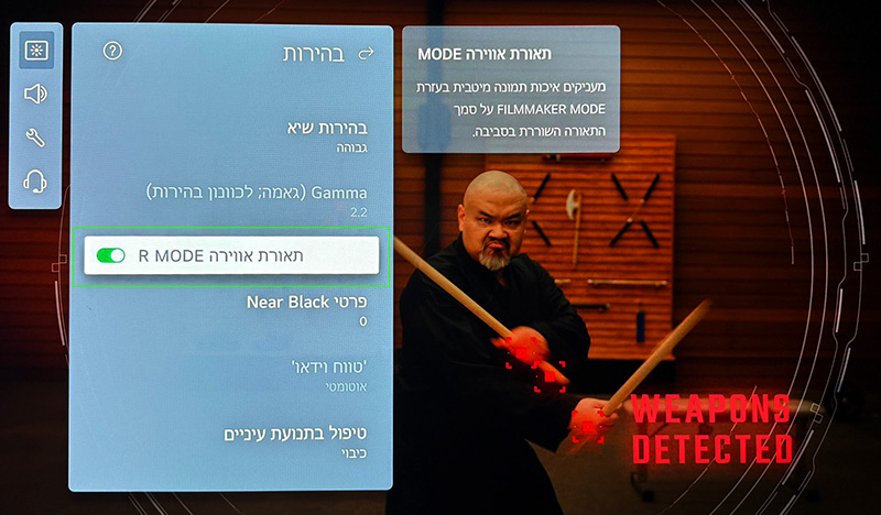 אפשרות “תאורת אווירה” קיימת בהגדרות התמונה בטלוויזיות כמו טלוויזיות OLED LG C5 ו-LG G5 שכוללת חיישן תאורה וגם מעודכנות לגירסה 1.1 Filmmaker Mode.