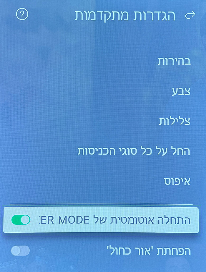 לאחר מכן יש להפעיל את האפשרות “תאורת אווירה” בתוכן הרצוי: