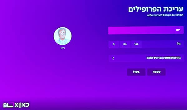 ניתן ליצור ולערוך פרופיל אישי לכל בן משפחה, הכולל התאמת תכנים לפי גיל המשתמש.