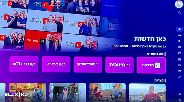 📺 טלוויזיה בשידור חי – ערוץ כאן 11, כאן חינוכית, כאן בערבית וכאן 11 עם כתוביות.