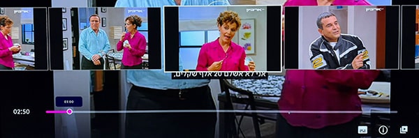 ניתן להשהות את השידור, להעביר קדימה/אחורה בזמן הכולל פריימים לתצוגה מקדימה.