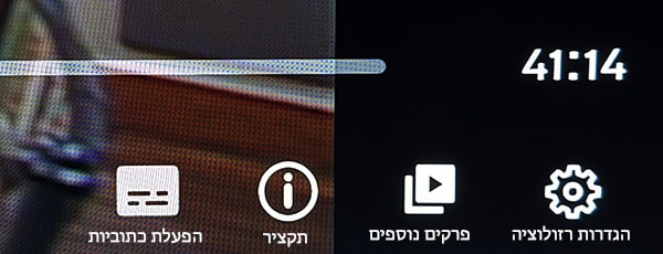בתחתית הנגן תוכלו למצוא את זמן השידור, הגדרות איכות הצפייה (רזולוציה), בחירת פרקים נוספים, הפעלת כתוביות ומידע על התוכן הנצפה.